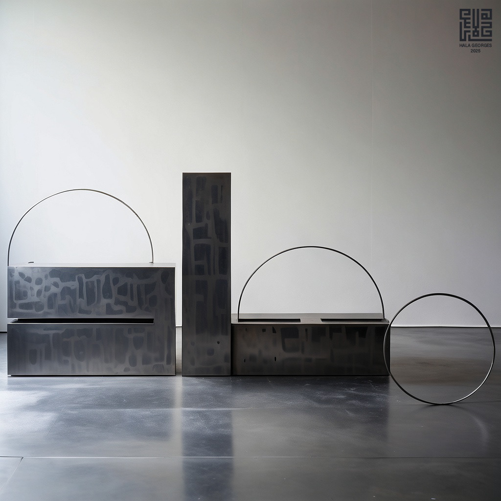The word معاك In Arabic is used to explore the transformation of abstract visual principles from two-dimensional composition into three-dimensional form. The work departs from binary notions of contrast—such as light versus dark or solid versus void—and instead foregrounds tension as an active spatial condition. Forms are positioned in relation to one another through balance, suspension, and proximity, allowing contrast to remain unresolved and perceptible. The shift from 2D to 3D operates as a conceptual and material inquiry. Graphic and typographic logics are abstracted into spatial structures, where meaning emerges through physical presence, scale, and the viewer’s movement around the work. Tension is sustained rather than resolved, resisting fixed interpretation and encouraging embodied engagement. This work positions abstraction as a mode of resistance, challenging reductive visual readings and static outcomes. By translating planar design principles into space, From Contrast to Tension expands typography and graphic form beyond the page, framing them as spatial, experiential, and critically open systems.